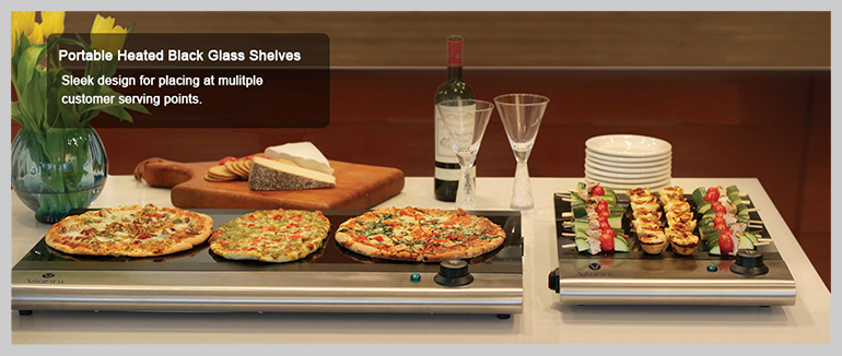 1. Quality: We follow our documented ISO 9001:2008 certified quality management processes on every unit built. Our black glass is designed and produced by Schott, a 125 year old German company and global leader in glass technology and innovation. Vianni’s Heated Shelves are certified and listed by TÜV Rheinland, a leading independent, accredited and worldwide organization that tests, audits and certifies products and systems for performance, electrical and food contact material testing (FDA Standards). 2. Durability: Stainless steel frame and 6mm thick glass surface make Vianni Heated Shelves more durable and strike resistant than 4mm glass used in other products. 3. Performance: We use a continually adjustable temperature controller made by E.G.O., an international German high-tech company and one of the leading global manufacturers of appliance technology, components and products. 4. User Friendly: Vianni Portable Heated Shelves have a simple to use control knob with a maximum warming temperature of 185 ° to ensure that moisture in food is retained longer and doesn’t burn or stick to the glass due this temperature capability. 5. UL and CAN/CSA standards: Vianni uses TÜV Rheinland as their certification testing agency which is accredited by OSHA and the Standard Council of Canada to Certify and Test Products to American UL and Canada CSA electrical safety standards. 6. Food Safe Surface Material: With TÜV Rheinland, our black glass surface is certified to be food-safe using (FDA) food contact testing standards. Being able to place food directly onto the glass surface provides a visual merchandising and sales opportunity for operators and eliminates the need to buy extra pans or insets. 7. Heating Element: Vianni Heated Shelves are equipped with a solid metal plate and membrane heating element. 8. Sleek Design: Stylish and sophisticated, Vianni Heated Shelves have lustrous and easy to clean glass with a curved stainless steel casing ideal to fit any setting. 9. Versatility: Available in portable and built-in models, Vianni Heated Shelves can be used for any occasion that requires holding and displaying food while preserving quality. 10. Limited Warranty: Backed by a 2-year parts warranty against manufacturer’s workmanship or material defects.